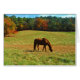 Cartão Cavalo Castanho Vermelho nas árvores do outono