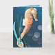 Cartão Cavalo-marinho laranja contra o mar com bolhas