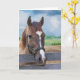 Cartão Cavalo marrom com anotação de ponte ou placa de sa