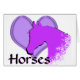 Uma silhueta da cabeça de um cavalo sobre o coração roxo e colorido com a palavra "Cavalos". A carta perfeita para o seu amante de cavalo!
