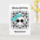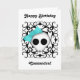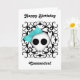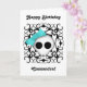 Adorável crânio gótico punk vestindo um golpe azul claro em um fundo caleidoscópio vitoriano sujo e preto. Mostrado aqui num bonito cartão de aniversário branco para raparigas adolescentes ou adolescentes. O texto é personalizável. Altere-o antes de fazer o pedido.