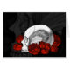 A partir de ilustrações antigas, essas camisetas gráficas e outros itens são impressos com uma imagem de crânio com rosas vermelhas.