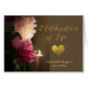 Peônias de luz de velas e um coração de ouro estão representados nesta Celebração do convite da Vida. Arte, imagem e direitos de autor versos © Shoaff Ballanger Studios, 2022.