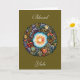 A imagem na frente deste cartão mostra a coroa de Yule incorporando a hera, o visco e o abeto. No centro está o Sol, em torno do qual toda a vida gira.