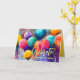 Este cartão de ocasião apresenta um buquê de vários balões coloridos e caindo confetti. O texto de exemplo apresentado diz: "Celebrar! É seu aniversário". O texto em dentro dizia: "Desejando felicidade hoje e nos próximos anos". Todo o texto pode ser alterado ou removido clicando em "Personalizar este Modelo". Além dos aniversários, este cartão divertido é perfeito para muitas outras ocasiões também. Basta mudar o texto em destaque e você terá o cartão perfeito para a graduação, aniversários, aposentadoria, noivados, um novo bebê, realizações especiais e muito mais.
