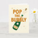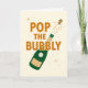 Este cartão diz Estoure a Bolha com uma ilustração de uma garrafa de vinho espumante. Perfeito para um cartão de congratulações de casamento ou noivado, celebração de Ano Novo, aniversário ou data especial.