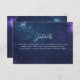 Compartilhe informações importantes com seus convidados em estilo com este cartão de detalhes romântico celestial do casamento. Apresentando um marinho profundo e um céu noturno violento e estrelado, a frente exibe elegantemente seu site de casamento, detalhes de recepção, acomodações ou direções. O verso apresenta um monograma encantador de pombinhos. Perfeito para temas de casamento cósmicos, assombrosos ou celestes românticos. Personalize facilmente para combinar seu evento e coordenar com a suíte de casamento celestial de cheio.