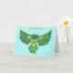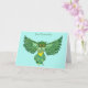 Nó Celta Verde trabalha coruja com uma envergadura de asa aberta num pano de fundo.