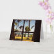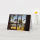 Cena de praia tropical de Fiji - Fotografia de uma praia nas Ilhas Fiji com palmeiras, hammocks e um banco de piquenique vistos através dos persianas abertos de uma cabana de praia. © Alan Harman Fotografia 2004. Todos os direitos reservados. www.alanharmanphotography.com 120418 cartão de saudação