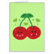 Esta ilustração adorável de cereja kawaii apresenta duas cerejas vermelhas brilhantes com sorrisos bonitos, bochechas rosadas e folhas verdes ricas cercadas por pequenos corações verdes doces! Este design de cereja giro é o presente perfeito para quem ama cerejas, arte kawaii, fruta de desenho animado ou trabalho de arte de diversão na moda!
