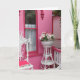 Uma cesta branca de flores agita a varanda de uma cabana vitoriana cor-de-rosa em Oak Bluffs no Vineyard de Martha. A Associação de Campinas do Vineyard da Martha (MVCMA), uma atração popular na ilha, abriga centenas de casacos vitorianos de gengibre. Oak Bluffs já foi conhecido como Cottage City. O Vineyard de Martha está localizado em Massachusetts, perto de Cape Cod.