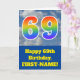 Cartão Céu Azul Nublado, Padrão Arco-Íris "69" Aniversári