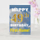 Cartão Céu Negro, Faux Dourado 49º Aniversário + Nome