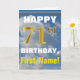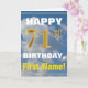 Este simples design de cartão de saudação com tema de aniversário apresenta um desejo quente de aniversário como "HAPPY 71rua BIRTHDAY, First-Name!" na frente, em texto a negrito sobre um fundo que mostra um céu azul com nuvens brancas e cinzas. O número de aniversário tem uma aparência falsa e imitada de cor dourada. O nome na frente pode ser personalizado. O dentro apresenta uma mensagem de aniversário que pode ser personalizada. Um cartão de boas-vindas como este poderia ser uma maneira divertida de fazer votos de aniversário a alguém que comemora seus setenta anos. [~Z0000284]