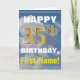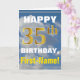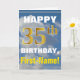 Este simples design de cartão de saudação com tema de aniversário apresenta um desejo quente de aniversário como "HAPPY 35th BIRTHDAY, First-Name!" na frente, em texto a negrito sobre um fundo que mostra um céu azul com nuvens brancas e cinzas. O número de aniversário tem uma aparência falsa e imitada de cor dourada. O nome na frente pode ser personalizado. O dentro apresenta uma mensagem de aniversário que pode ser personalizada. Um cartão de saudação como este poderia ser uma maneira divertida de fazer votos de aniversário a alguém que comemora seus trinta e cinco anos. [~Z0000284]