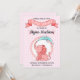 Um elefante rosa giro dá a si mesma a chá de ajudá-lo a celebrar seu chá de fraldas. Bolinhas cor-de-rosa e um cartaz anunciando sua menina.
