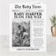 Faça uma declaração ousada e memorável com um convite para o chá de fraldas "Jornal de Foto Único". Projetado para se assemelhar a um layout clássico de jornal, este convite criativo apresenta sua foto favorita da futura mãe, juntamente com manchetes lúdicas e detalhes da próxima celebração. A design do estilo jornal vintage acrescenta um elemento divertido e peculiar, enquanto a tipografia moderna e os sotaques com temática para bebês o tornam perfeito para um chá de fraldas. Este convite único não só se destacará, como também dará o tom para um evento memorável e excitante.