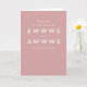Uma brincadeira engraçada e punny no "oohs and ahhs", esta parabéns ao novo cartão dos pais, apresenta o doce texto "bem-vindos às sem fim de wws e awwws da paternidade." É uma maneira divertida e inteligente de receber um novo bebê. Com o seu fundo cor-de-rosa macio e o texto interior que pode ser personalizado, este cartão de saudação é perfeito para um chá de fraldas de menina!