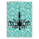 Cartão Chandelier Silhouette Teal Damask