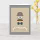 Feliz Cartão de Aniversário com ilustração de um chapéu de topo, bigode (bigode), óculos (óculos) e arco. Personalize-o inserindo o seu próprio texto.