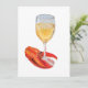 Cartão chato decorado com uma ilustração de uma garra de lagosta em torno do pé de um cálice de vinho branco. Perfeito para convites, bilhetes de agradecimento e anúncios. Arte: Lápis de cor. Direitos autorais Dominic A. White.