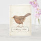 O texto diz "A Cheery Hello" na frente, enquanto o dentro tem um poema antigo: "para iluminar seu dia com um alô alegre e dizer que você é pensado em mais do que você sabe!" Ilustração Vintage Robin em um fundo pergaminho vintage com um símbolo azul vintage francês.
