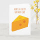 Um cartão de aniversário peculiar para quem gosta de um trocadilho. É vazio no dentro, então você pode adicionar uma mensagem especial que certamente deixa uma impressão.