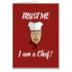 Cabeça de chef com chapéu, corcunda vermelha e texto personalizado.
