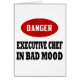 Camisas e presentes engraçados com um sinal de perigo vermelho e as palavras chef executivo de mau humor.