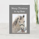 Cartão Chefe de Natal Mágico Deseja Cavalo Branco