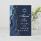 Elegante azul marinho e ágata dourada decora a lateral deste cartão de congratulações moderno para festa de Bat Mitzvah. Mazel Tov! Personalize-o sob a Estrela de Davi. Cartão de felicitações perfeito para uma família judia chic e elegante que celebra a chamada de uma menina ao Torá.