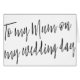 Um cartão moderno, chic e bonito de caligrafia "Para a minha mãe no dia do meu casamento", perfeito para dar à sua mãe no dia do seu casamento.
