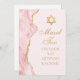 Chic rosa e ágata dourada decora a lateral deste cartão de congratulações moderno para festa de Bat Mitzvah. Mazel Tov! Personalize-o sob a Estrela de Davi. Lindo cartão de felicitações perfeito para uma família judia chic e elegante que celebra uma menina sendo chamada ao Torá.