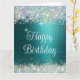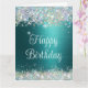 Cartão Chic Teal Holographic Faux Glitter Feliz Aniversár