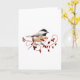 People who love Chickadees know that they are a friendly little bird. This pretty Chickadee on some red leaves will make a great gift for a bird lover.