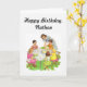 this birthday card has a vIntage image of children at an outdoor birthday party.