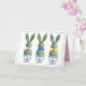 Este cartão de Páscoa apresenta adoráveis coelhos em topiárias verdes com laços rosa, azul e amarelo em vasos de flores de chinoiserie azul e branco. Personalize a mensagem de Natal no interior com a sua escolha de texto especial.