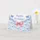 Este estilo de safra borboletas azuis e brancas e doce arco rosa vintage faz um cartão de aniversário divertido, na moda e elegante para alguém especial! Você pode personalizar o texto na frente e na dentro para qualquer ocasião. Perfeito para primavera, Páscoa ou a qualquer momento.