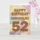 Um cartão de diversão excelente para um amante de chocolate. O escrevendo é feito de bares de chocolate! Um cartão de aniversário de excelente para qualquer mulher.