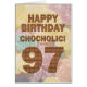 Um cartão de diversão excelente para um amante de chocolate. O escrevendo é feito de bares de chocolate! Um cartão de aniversário de excelente para qualquer mulher.