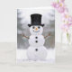 Cartão Christmas Happy Snowman Wearing a Top Hat