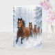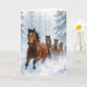 A herd of chestnut-colored horses gallops through a breathtaking, snowy forest, their powerful movements creating a stunning contrast against the serene, snow-covered trees that envelop the scene in majestic beauty.