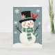 The snowman stands on a snowy base, completing the serene setting. This illustration captures a happy and festive mood, perfect for bringing holiday cheer to anyone who sees it. 🎅🏼🎄🎁 Share the joy with this delightful card!