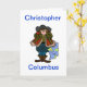 Here's the other version we have of Christopher Columbus.  We didn't give him any moustache this time and he looks a little younger. We did give him his map per se.  Apparently, it didn't work. So on this card we spoof the fact he got lost (and history recorded it!)  However, you're free to change the wording and customize this to say whatever you'd like it to.  TO CUSTOMIZE:  (1) Click the "Customize It button.  (2) Click "Add Text.  (3)  Type What You Want  (3) To change the font styles, click the "F" box and a pop-up menu will appear with lots of font designs.  (4) To change the font color click the black box and another pop-up menu will appear with lots of colors.  (5) To size text  (or images) use the + and - buttons.  (6) To move text (or images) around, use the arrow keys or... go to the top left and click into the "Design" mode.  Your mouse then makes moving things easier.