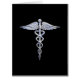 O design do Símbolo Simbólico de Símbolo Médico de Caduceus apresentado aqui em um fundo preto. Os cobras caduceus são feitos para parecerem feitos de cromo. Bom para a formatura, para a sua profissão, ou para um presente com aquele olhar médico que você está procurando.