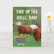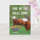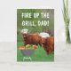 Cartão do Dia dos Pais super engraçado com dois bois das Terras Altas escoceses no churrasco! Personalize as mensagens e mostre ao Papai um grande momento. Fotos e design ©Christine Greenspan. Gráficos licenciados.