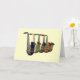 Cinco saxofones em azul, ouro, preto, vermelho e verde com chaves douradas dispostas em uma linha. Totalmente personalizável e fácil de personalizar. Altere a cor de fundo e adicione o seu próprio convite ou mensagem de texto. O presente ideal para um leitor saxofone ou fã ou, se você está na indústria musical, um presente de marketing para seus músicos ou clientes.