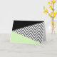 Padrão elegante, na moda e sofisticado de zigue-zague (chevron) em cinzas e cor branca com manchas de cor pretas e menta. Presente moderno e moderno, perfeito para o amante ziguezague na sua vida.