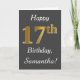 Cartão Cinzas, Faux Dourado 17º Aniversário + Nome Person