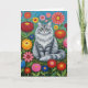 Cartão Cinzas Fluffy Striped Cat com Flores de Arte Folcl